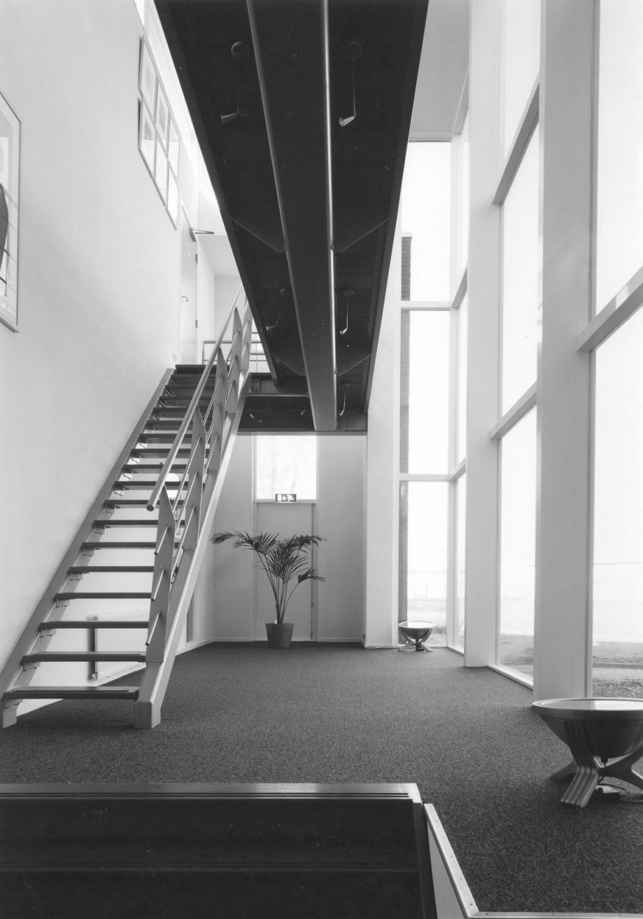 kleedkamers met sauna’s en een bar. Het uitgangspunt bij het ontwerp was een centrale verkeersruimte met trappen waar vanuit alle andere ruimten ontsloten worden. Bij de entree is de fitnesszaal van bijna 200 vierkante meter. Als bezoekers zich hebben gemeld bij de balie, en de kinderen eventueel naar de crèche hebben gebracht, gaat men een trap op naar de kleedruimten met sauna’s.