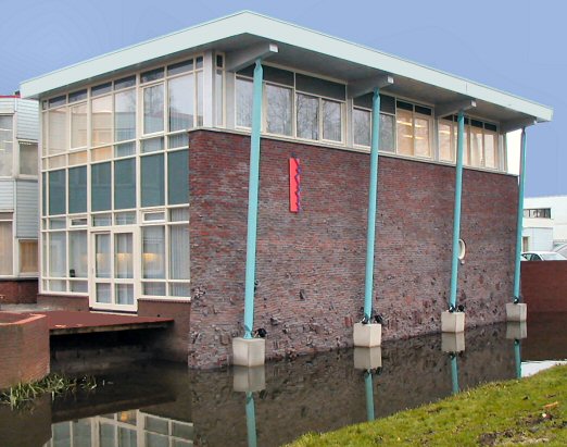 Het kantoor van de woningstichting te Papendrecht is na de fusie met Alblasserdam uitgebreid met een nieuwe vleugel. De nieuwbouw kwam door de smalle strook die grensde tussen het bestaande kantoor en het water, letterlijk in het water te staan. De ruwe gevel die uit het water oprijst symboliseert de degelijkheid en duurzaamheid die deze woningstichting in het vaandel voert. Een bijzonder ervaring was met de metselaars samen het metselwerk van grof tot fijn samen te stellen.