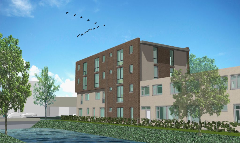 Hierin is plaats voor 16 appartementen van 38 m2 met een gemeenschappelijke woonkamer.