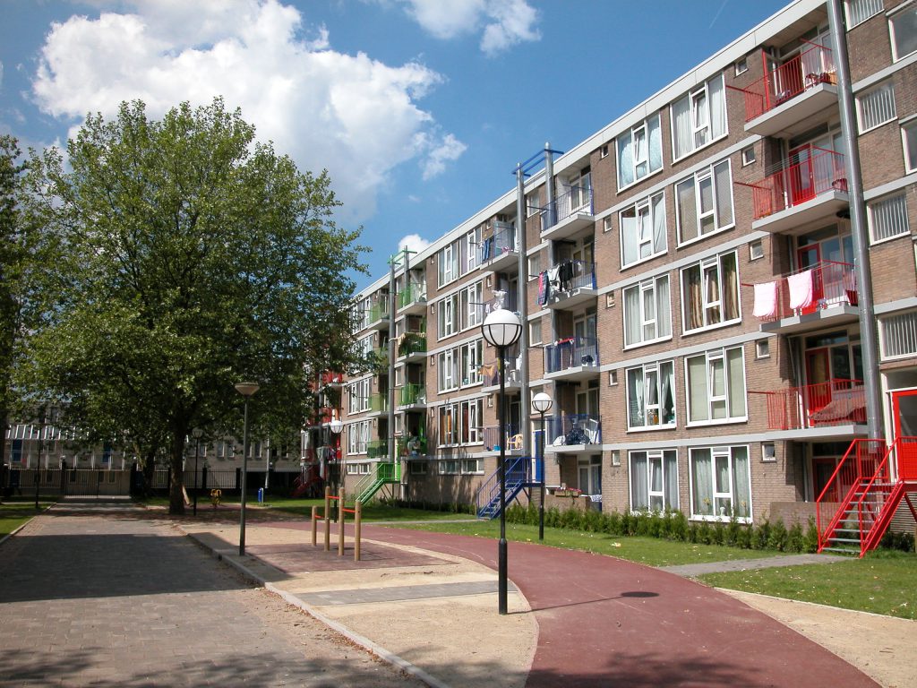 Renovatie en buitenruimte ontwerp voor 157 galerij- en portiekwoningen te Schiedam.
