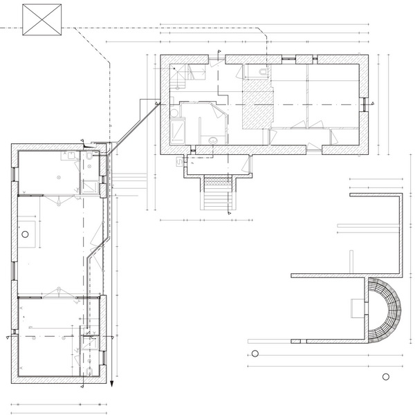 Het huis was reeds jaren onbewoond en deed dienst als opslag. Onderzoek gaf aan dat het reeds honderden jaren oud moet zijn, dit konden we zien aan de oude kapspanten en de evier (gootsteen), maar ook aan het kruisvaarders teken in de dorpel. Kenmerkend is de dubbele openhaard midden in het huis, die de keuken en de woonkamer verwarmen. Wij wilden met het ontwerp het bijzondere karakter van het huis respecteren, daarom zijn veel traditionele bouwmaterialen gezocht. Plavuizen, pleisterwerk en raamkozijnen zijn door plaatselijke ambachtslieden gemaakt en geleverd. Het souterrain is verdiept en geschikt gemaakt voor twee slaapkamers en een badkamer. Boven de woonkeuken is een vide gemaakt naar het dak waardoor de oude spanten zichtbaar zijn,terwijl het tevens veel licht binnenbrengt. De oude broodoven in de schuur is gerestaureerd en tot overdekt terras omgevormd.