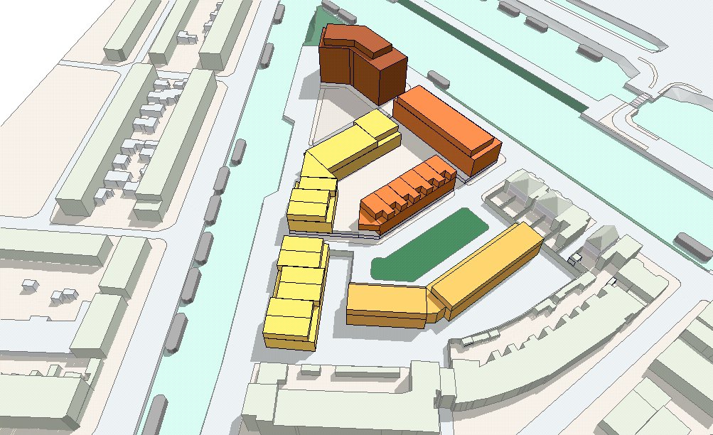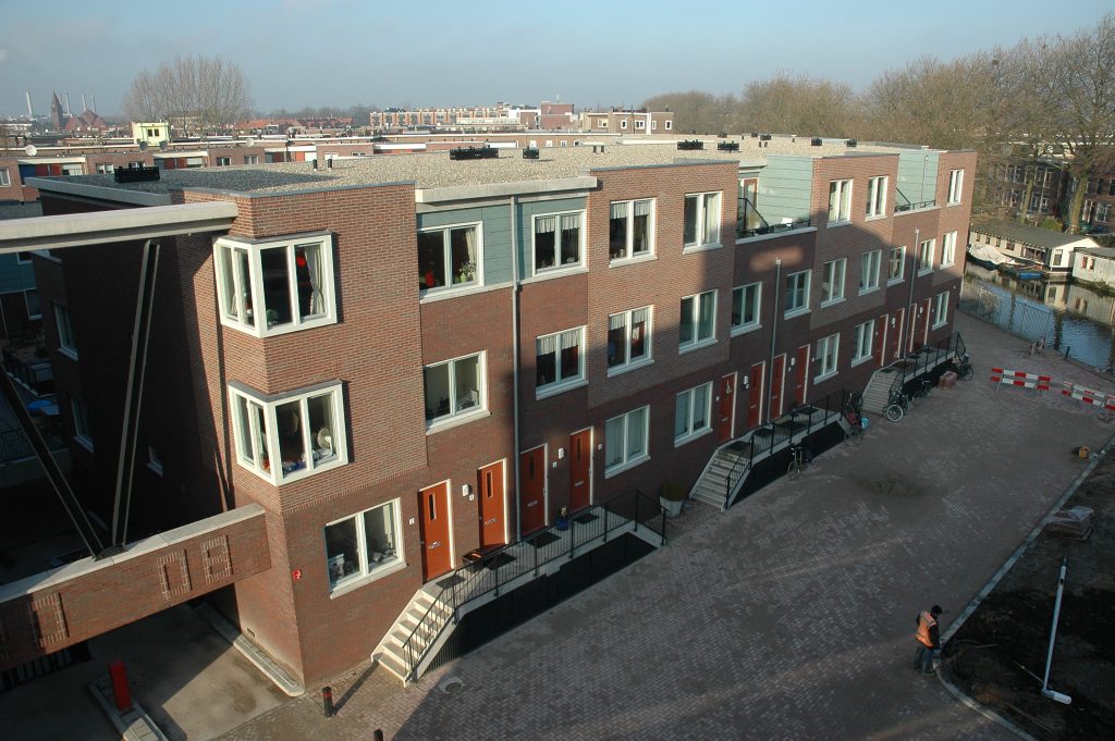 Op een voormalig industrieterrein in de wijk Lombok, tussen de Oude Rijn en het Merwedekanaal zijn 92 woningen gerealiseerd met verschillende woningtypen.